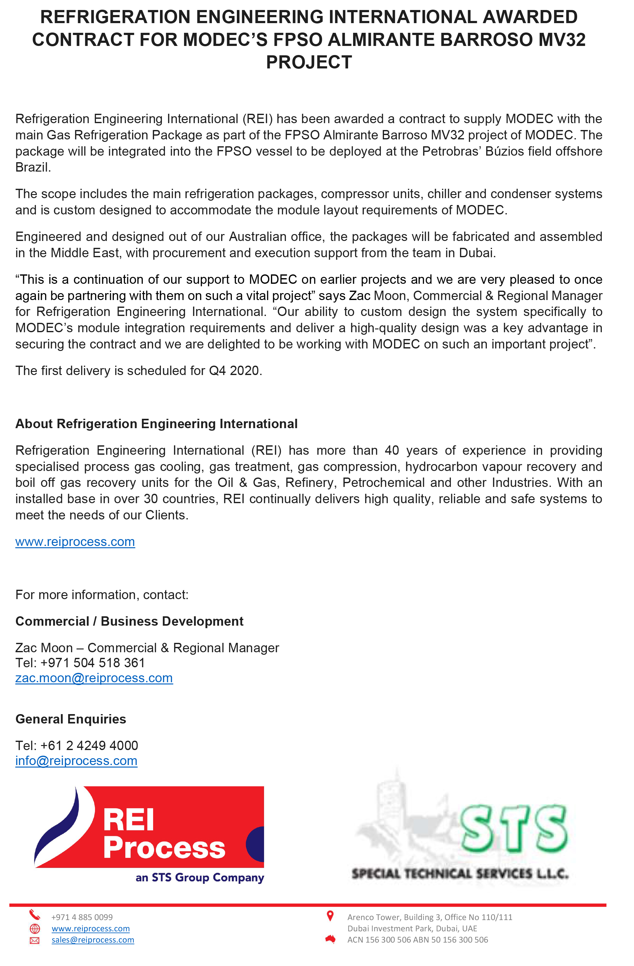Refrigeration Engineering International awarded contract for MODEC’s FPSO Almirante Barroso MV32 Project
